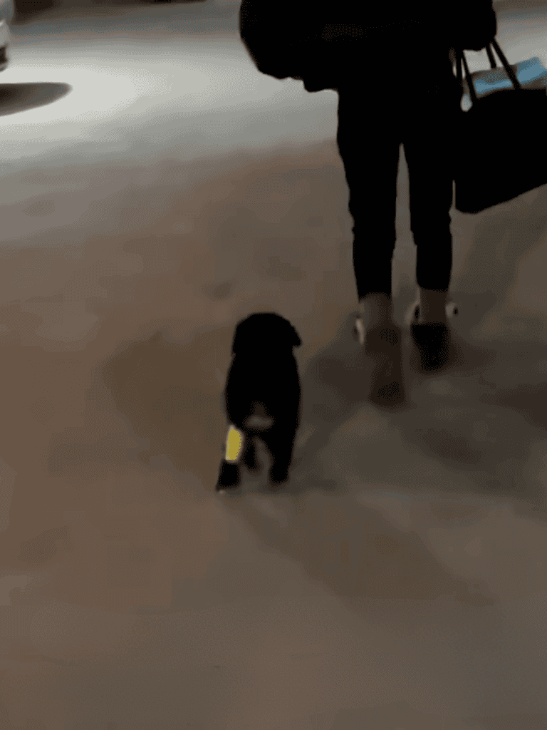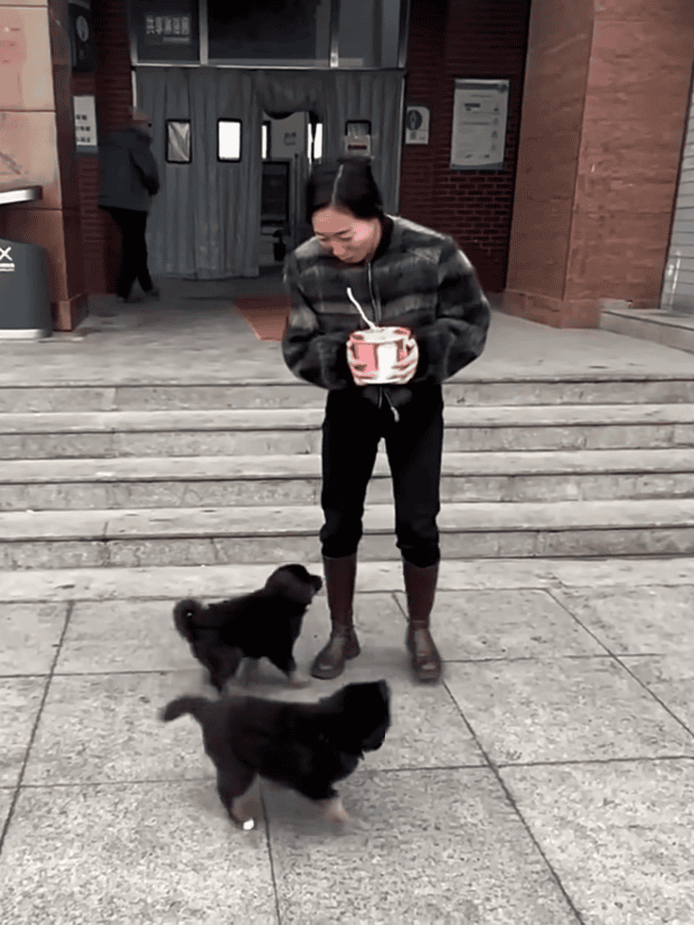 One puppy dashed towards the woman, seeking warmth. The other remained motionless, shivering with a swollen leg. Despite its pain, it gazed up with pleading eyes, its frame shaking.