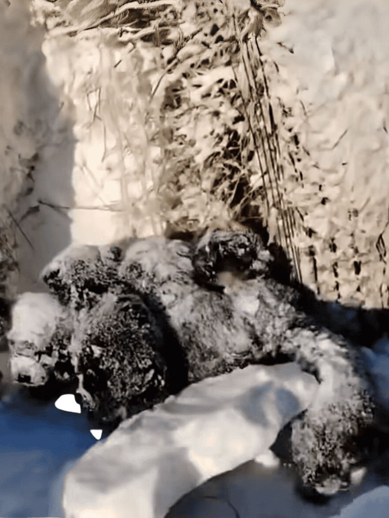Amidst the unforgiving cold, the puppies lay shivering, snow clinging to their tiny bodies. Their frail forms were no match for the biting wind and frigid temperatures.