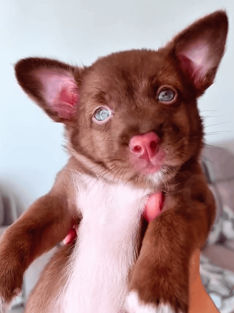 By Day 28, Tanzi eagerly latched onto the bottle, batting her paws and wagging her tail. She craved both nourishment and connection, her eyes sparkling with trust.