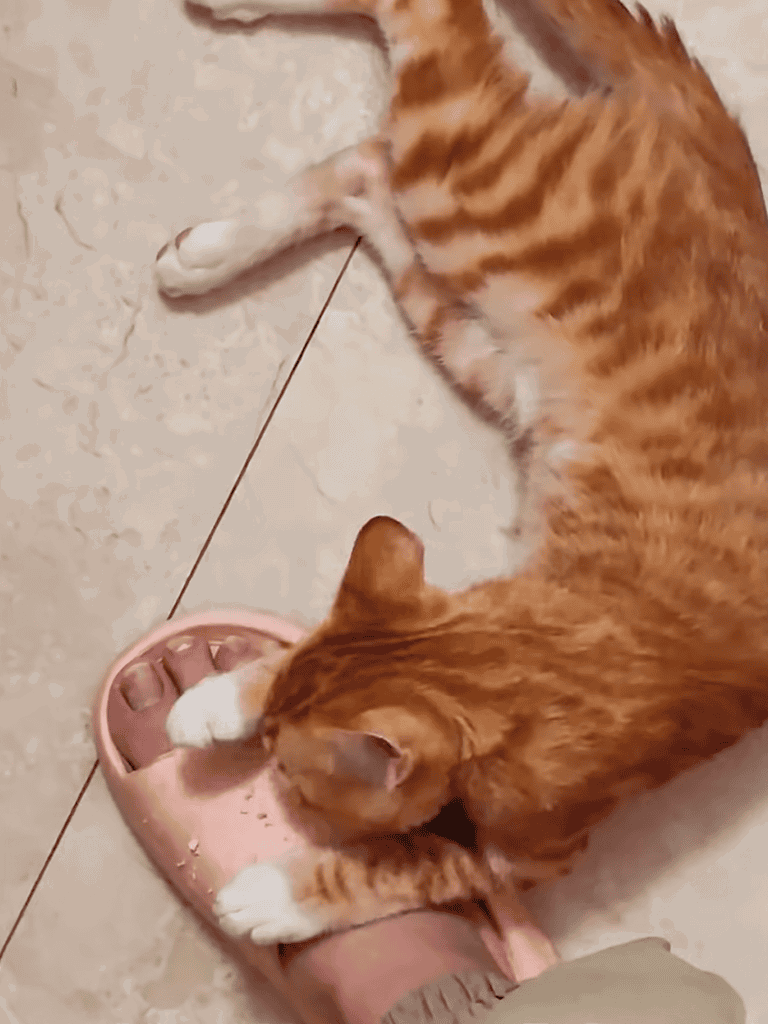 Her playful defiance contrasts the timid kitten I first rescued, showing how much she’s grown under my care.