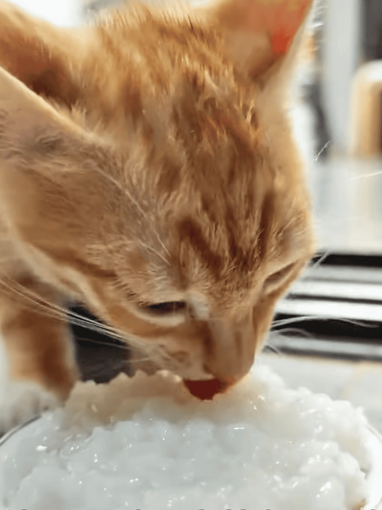 Mine enjoys simple care and prefers rice porridge over fancy cat food, reflecting their adaptable nature.
