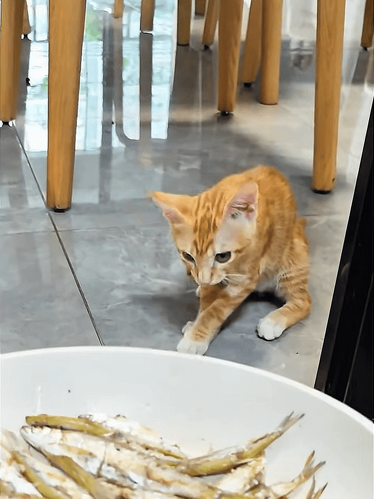 She eats everything I give—chicken breast, dried fish—and enjoys it quietly, without overindulging.