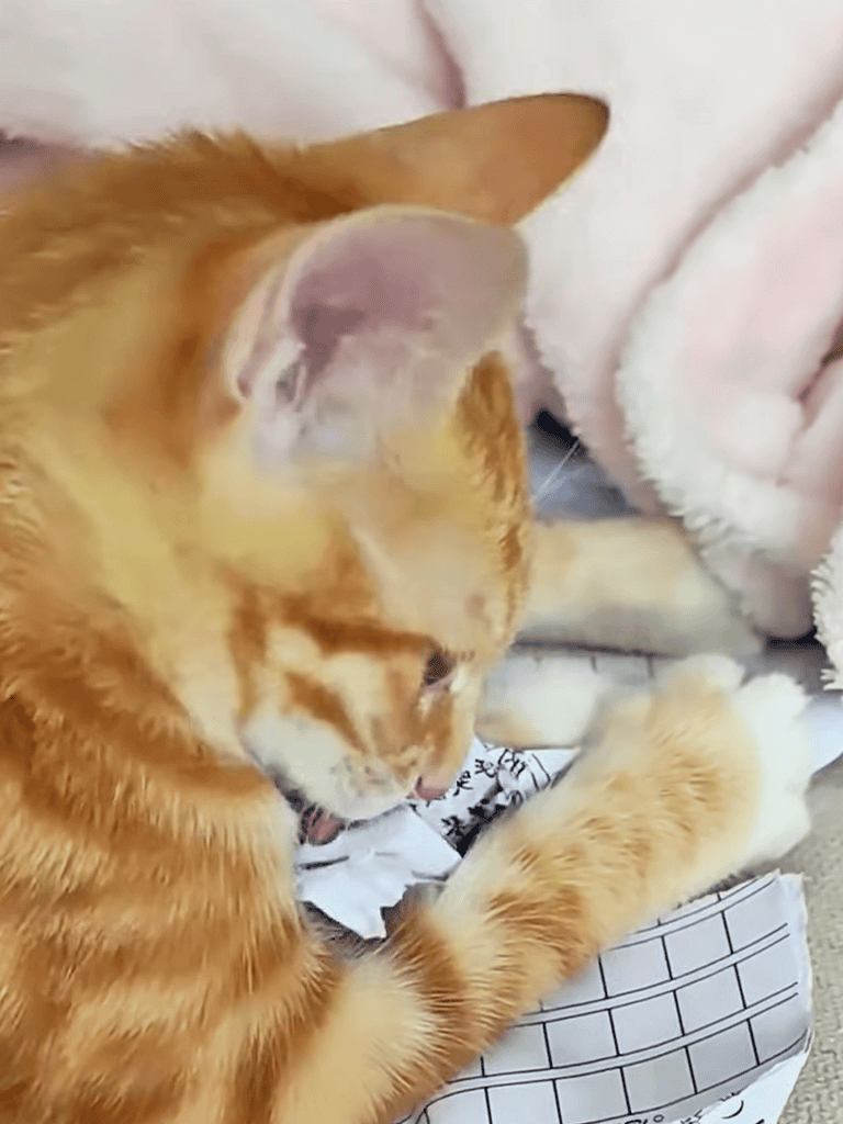 I cleaned her ears, scooped her up, and let her curl on my lap. Her paws batted at my hands, showing trust.