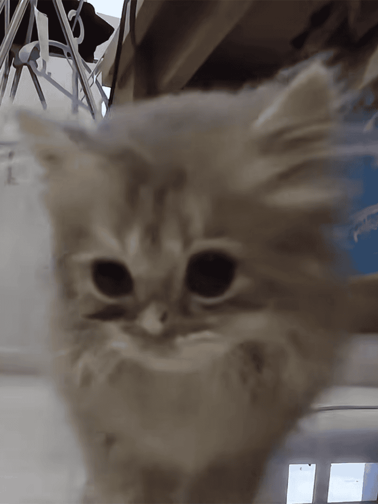 After eating, the kitten explored the room, inspecting corners, pouncing on imaginary prey, and batting at shadows, full of energy and curiosity.