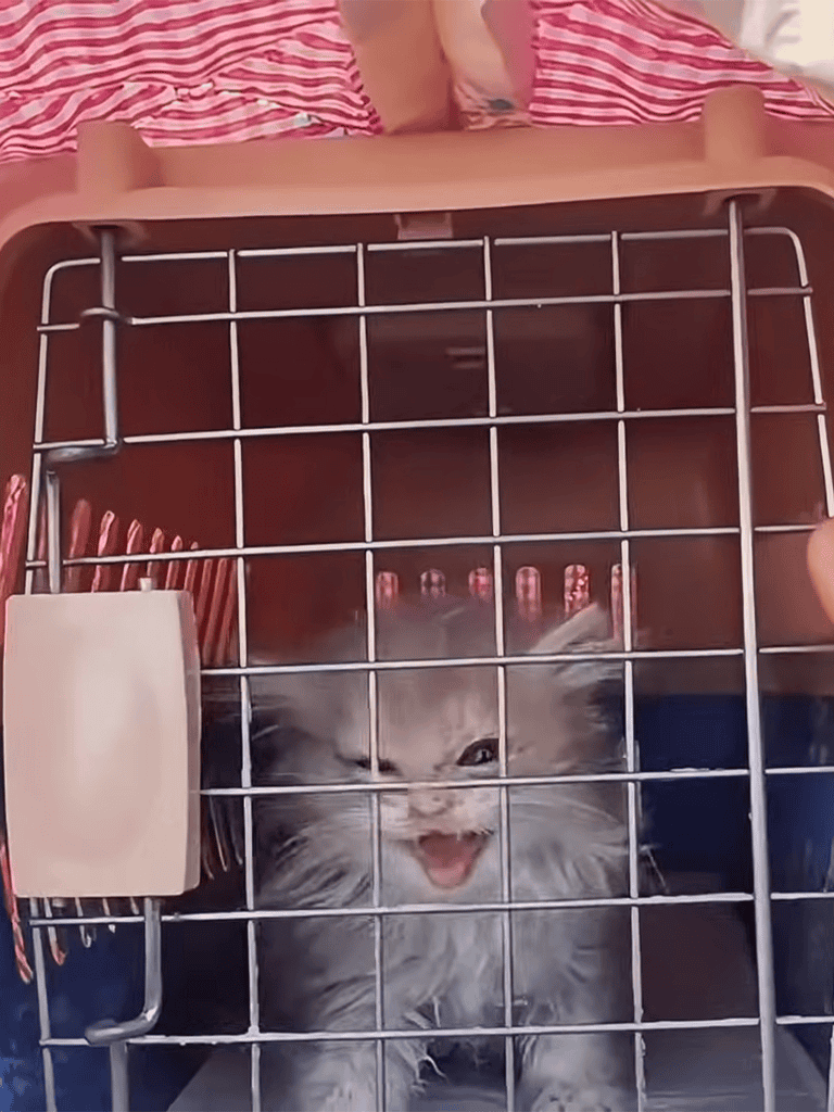 I placed the kitten into a sturdy cardboard box and carried it to the veterinary hospital. Despite shivering and muffled cries, it stayed still, sensing help was near.