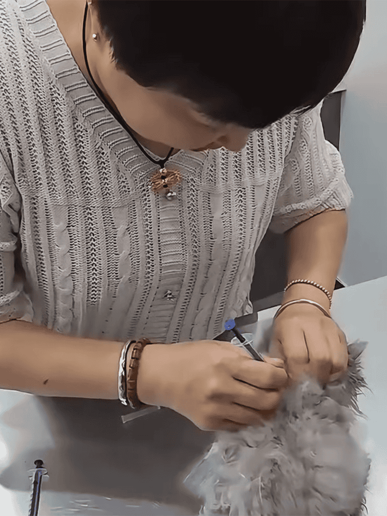 As the needle entered the kitten’s frame, the veterinarian’s expression relaxed.