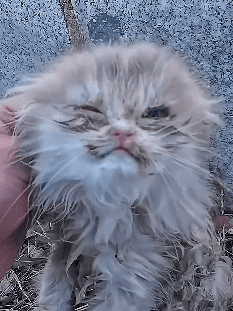 The kitten’s eyes were crusted with secretions, reddened and cloudy, indicating inflammation and neglect.