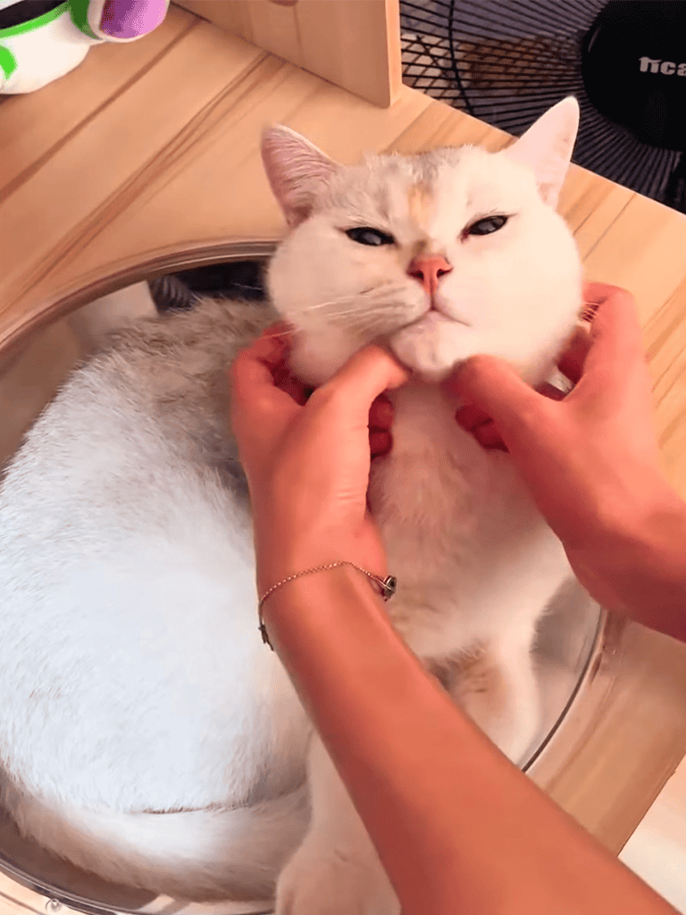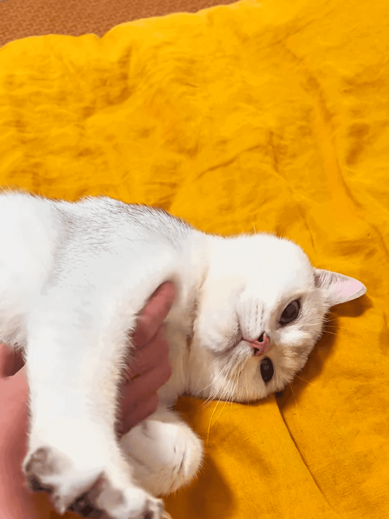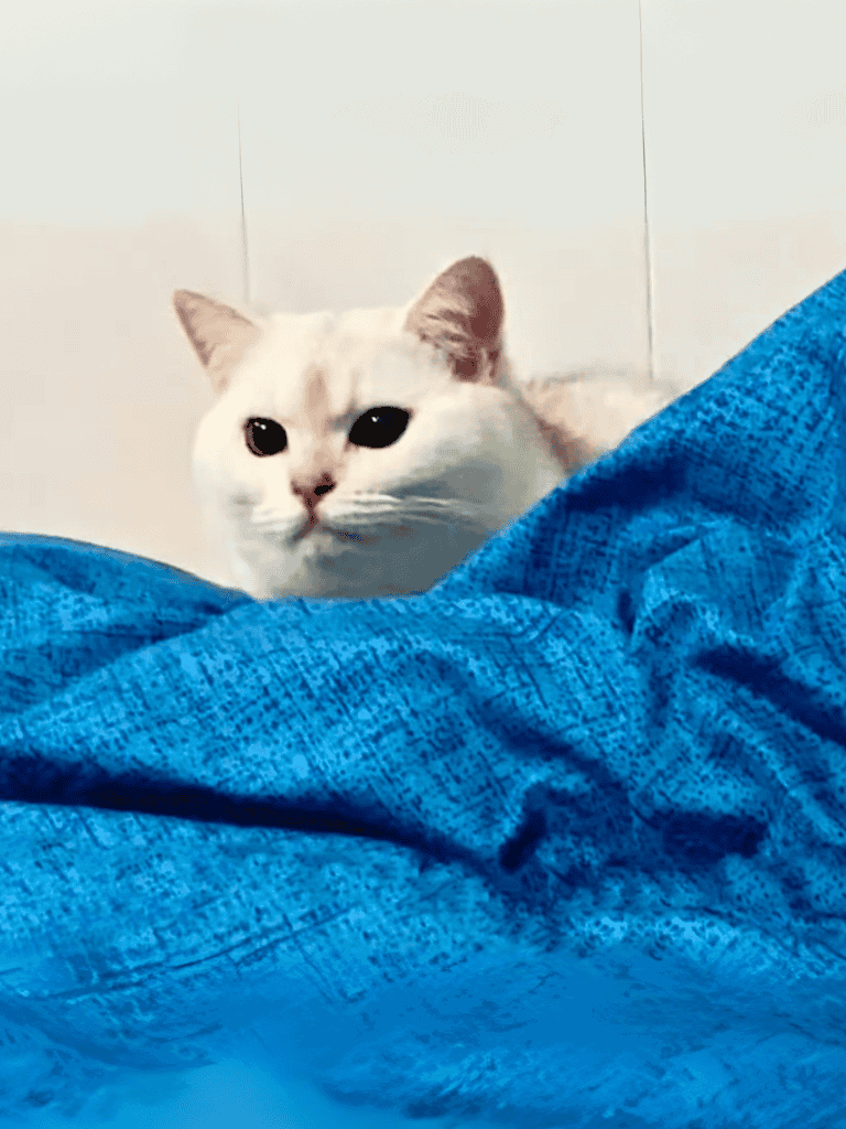 Occasionally, he lets out a soft meow, reminding me he’s there, waiting for affection.