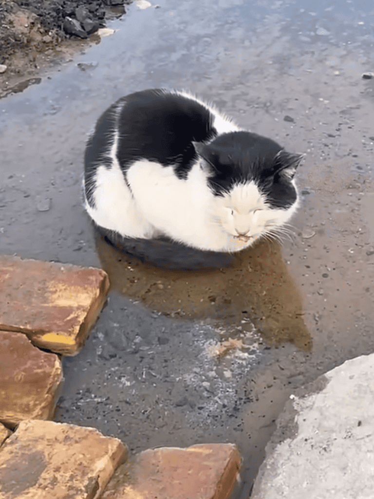 A sick and abandoned cat relieves pain in cold water, just wants to die quietly