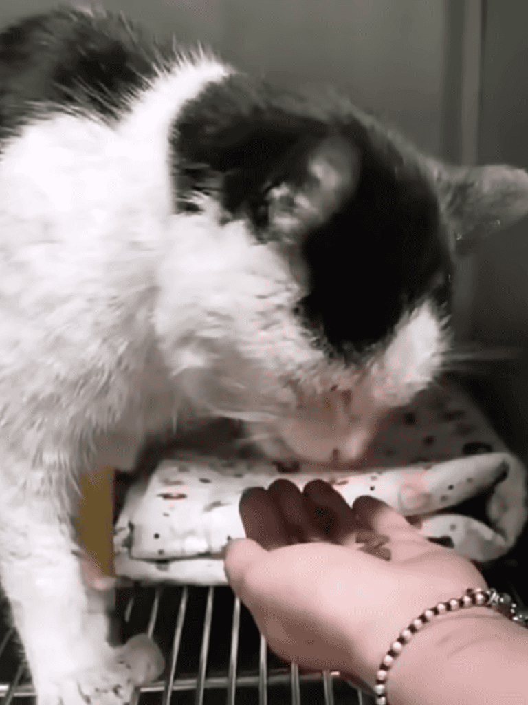 Day five brought hope as the cat drank water and ate some food. At the hospital, the girl following its recovery visited, joyful at the cat’s progress—proof of care and determination.