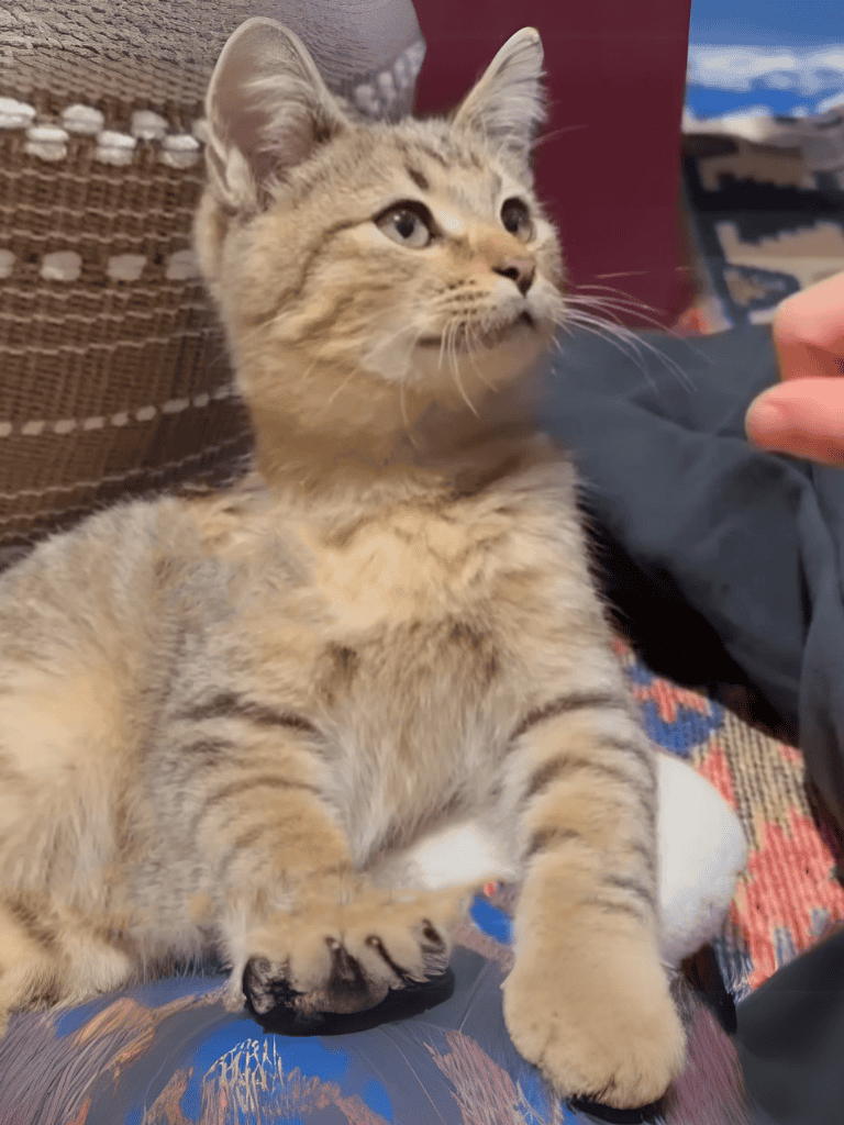 As the kitten’s eyes caught the morning light, the man felt a shift. The mother cat’s trust and the kitten’s perseverance seemed to lead him here, intertwining their lives by fate.