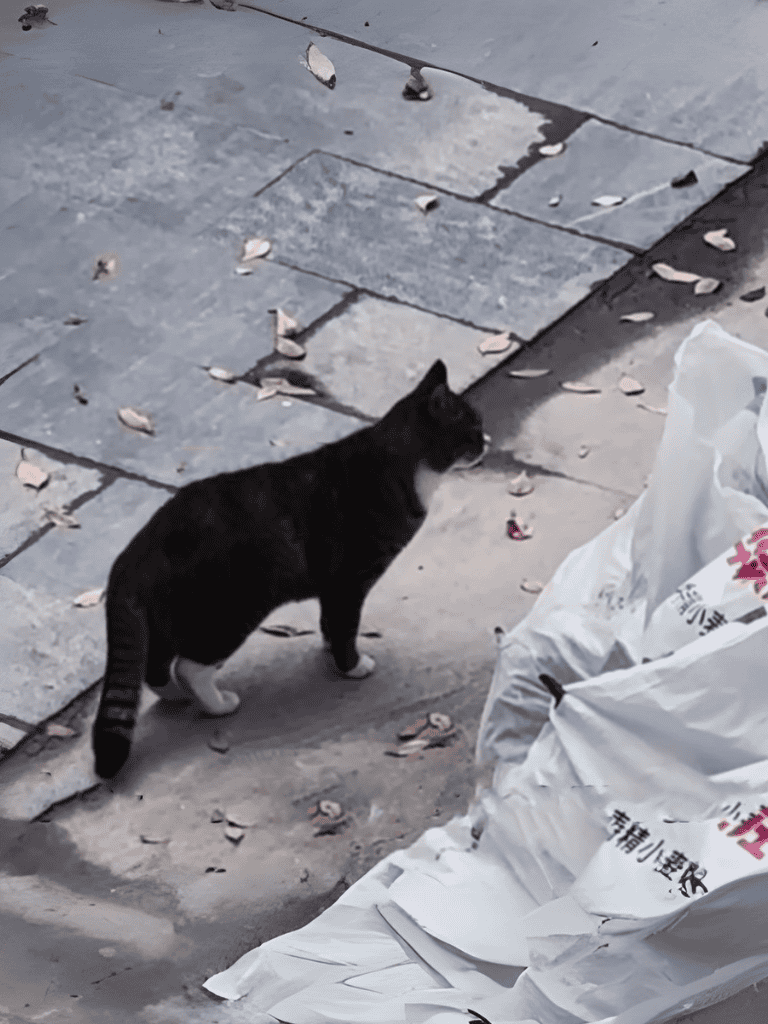 The kitten scampered forward, rubbing against the man’s legs and mewing, while the mother cat lingered, observing calmly from a distance. The man wondered: Was this a test of trust or a hesitant farewell?