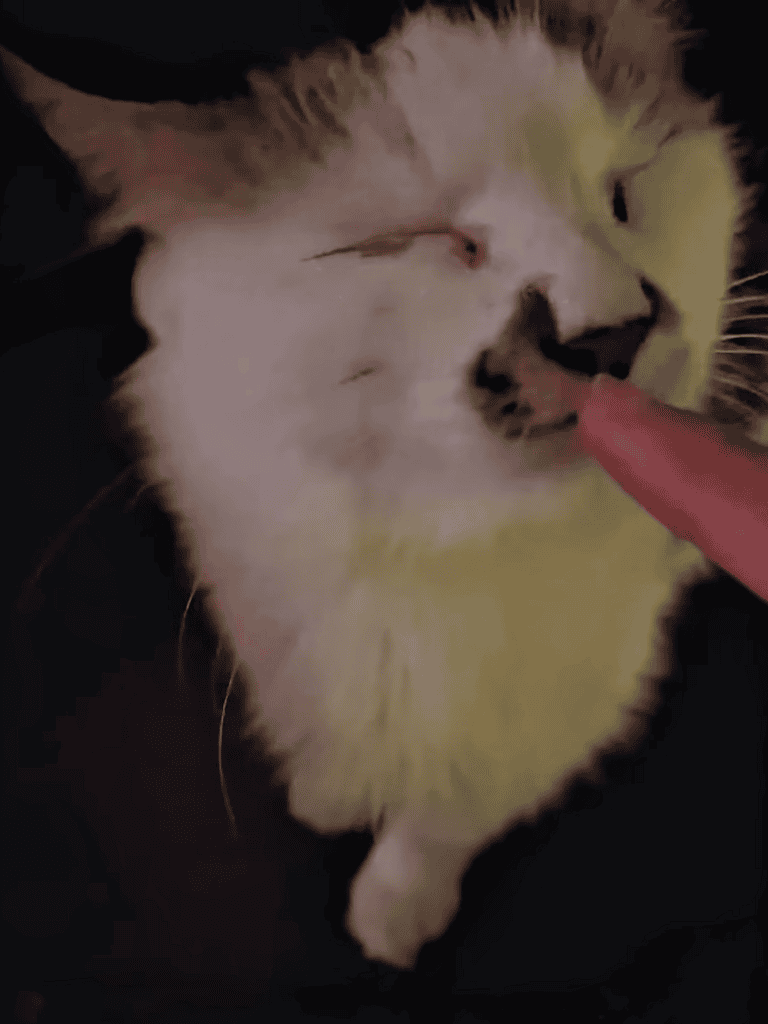 After settling the kitten, I comforted Pipi and Fatty. Pipi kept her distance, wary. Fatty sniffed the air but held back.
