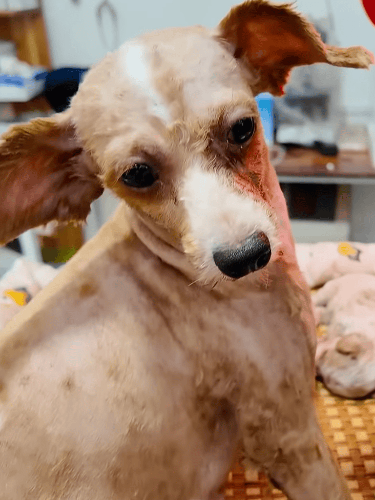 The groomer shaved off the mother dog’s matted fur, revealing a cleaner, healthier version of her, with skin finally free to breathe.
