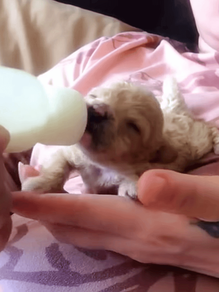 To ensure the tiny puppy’s survival, the man hurried to a nearby pet store.