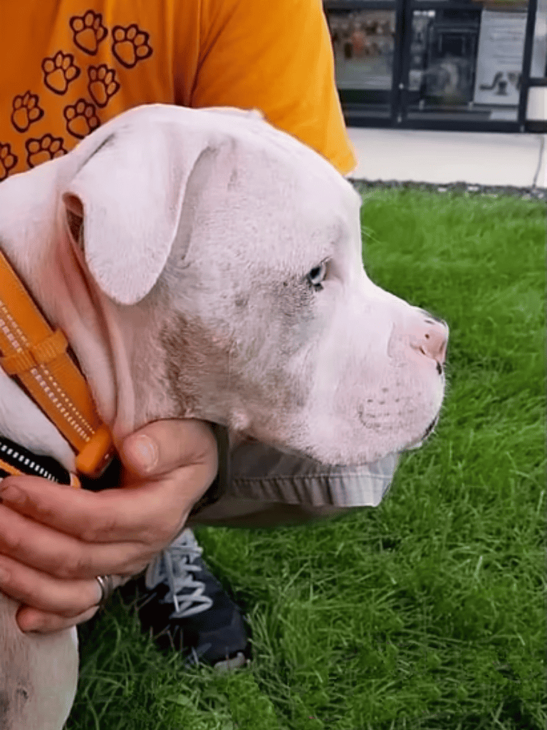 Stinger, a deaf pit mix, is now at Allegan Veterinary Clinic.