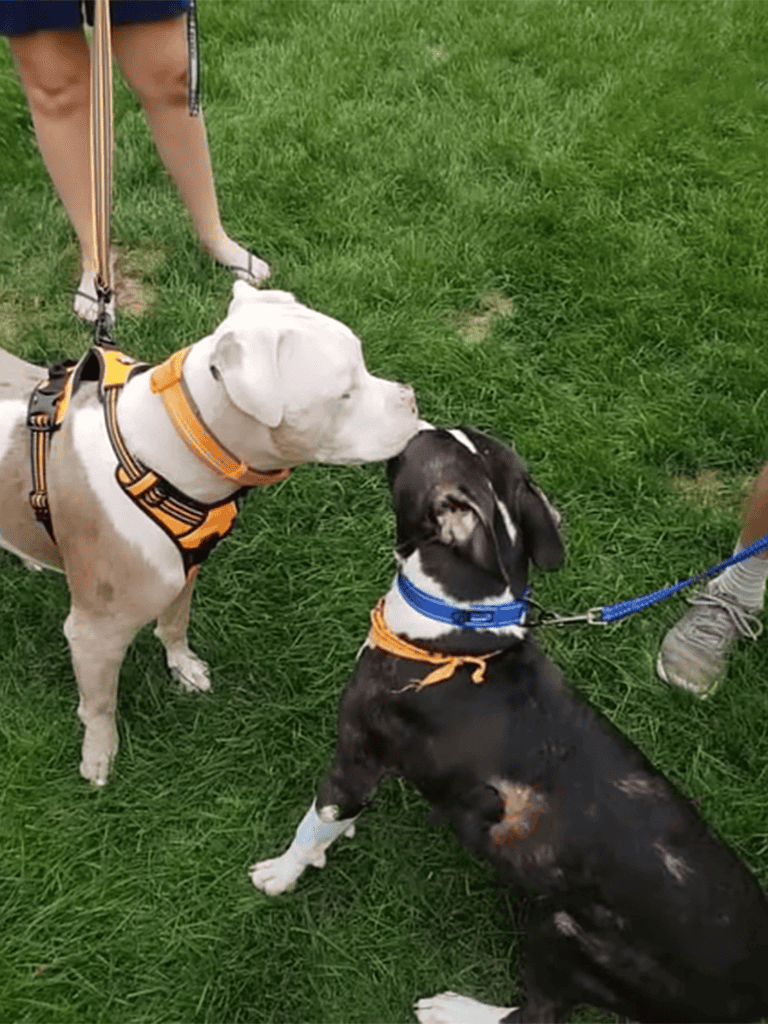 Stinger, once frail and abandoned, now thrives with play, love, and strength.