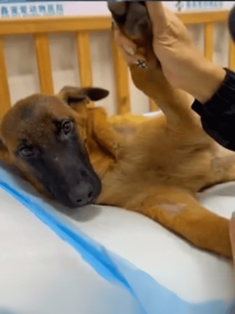 After a swift 25-minute journey, we pulled up to the hospital, urgency in our every move. With no time to spare, the medical team immediately whisked the frail dog away, cradling it with the utmost care.