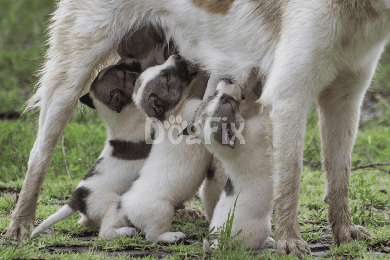 Starting with the tiny furballs – nursing puppies should stick to mama’s milk. Once they’re off the boob, a little bit of cow’s or goat’s milk might be fine if they can handle lactose and don’t have an allergy.