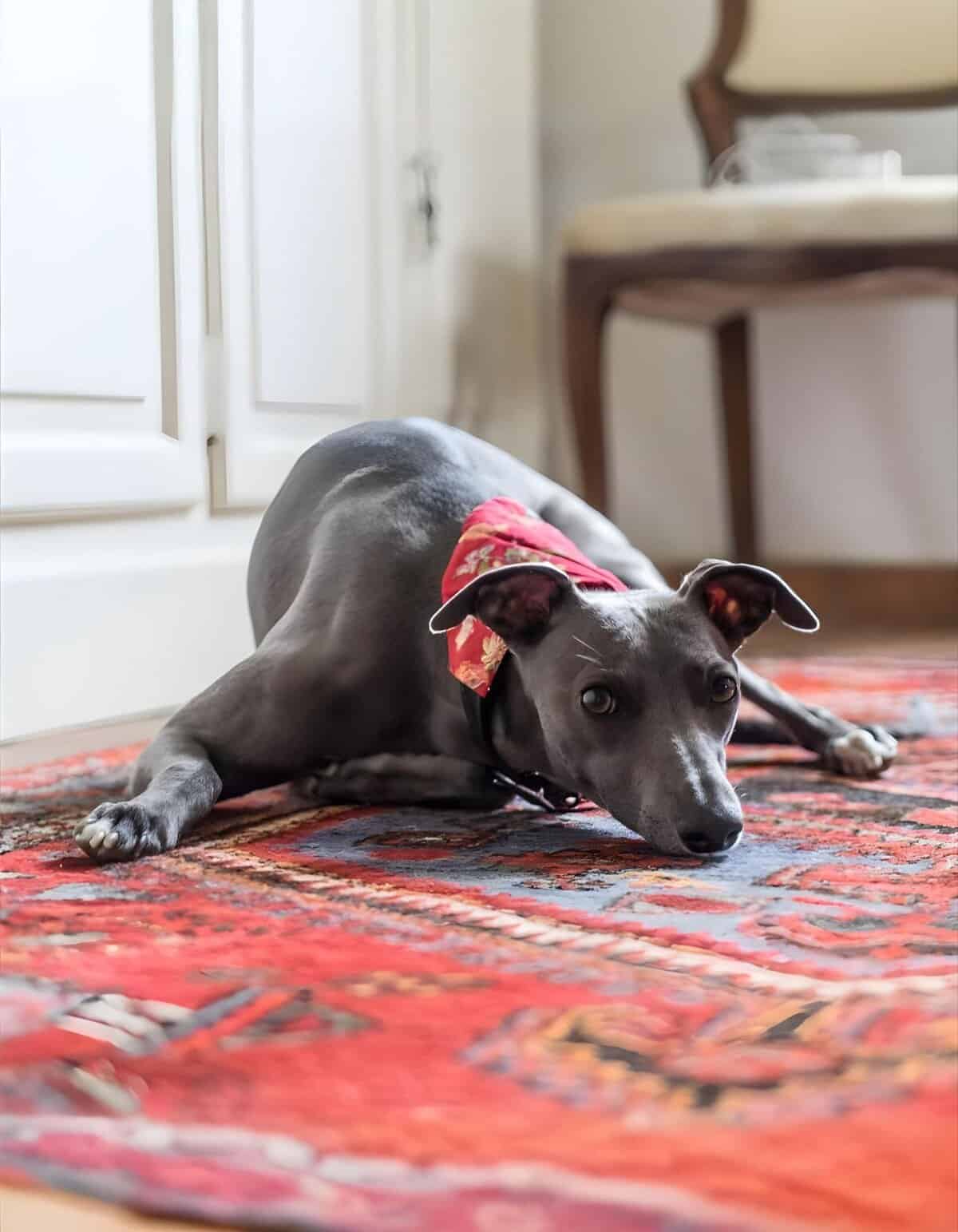 To help a dog with vision issues navigate their home, keep furniture and objects in the same spot. Clear pathways make it easier for them to memorize routes. Place textured rugs near important locations like food, water bowls, and beds. This allows the dog to feel where they are.