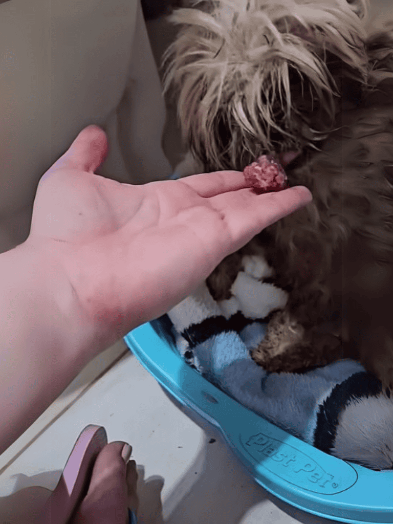 Hours of care revealed she was once discarded after being a breeding dog. Her past hinted at betrayal, but compassion began her healing. Although her vision was impaired, she gradually trusted again.