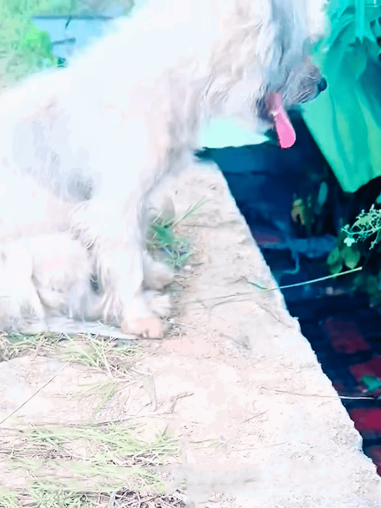 Exhausted but watchful, the mother dog kept her eyes on her puppies. Weak and hungry, she remained their guardian, shielding them from danger.