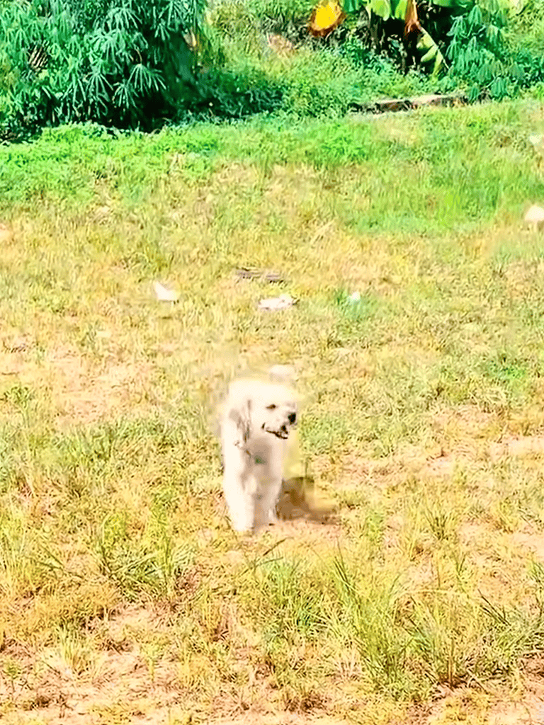 As we returned, she ran beside us, tail wagging. Her paws kicked up dust, but she didn’t mind—she was happy with us.