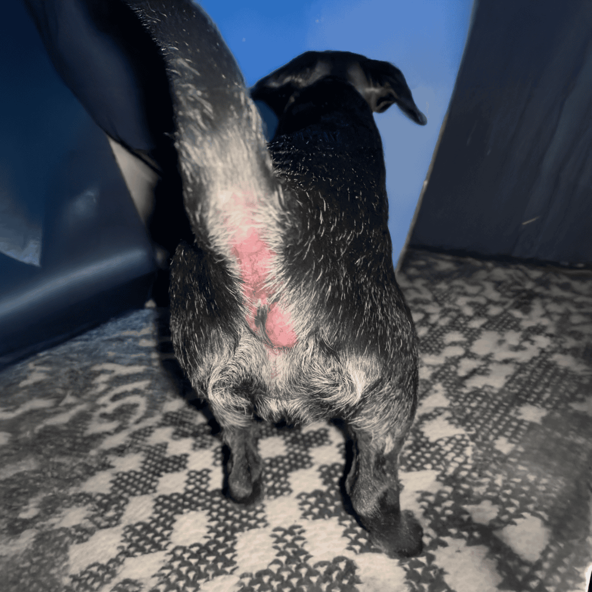 Infections in the anal glands cause the buildup of pus, leading to moderate to severe pain. The infection can obstruct the gland’s opening, further aggravating the condition. Visible signs may include discoloration around the anus or a red, swollen spot near the anal opening.