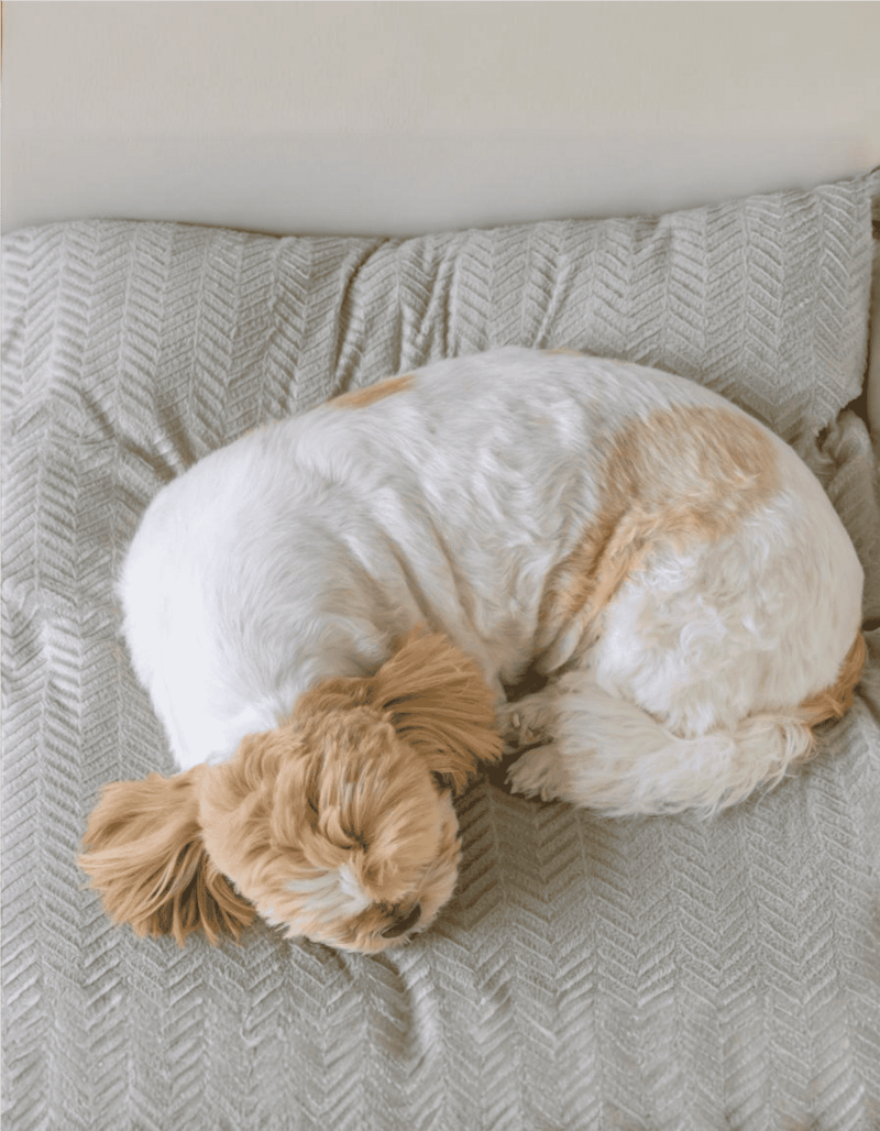 For dogs favouring this sleeping pose, a warming bed like the Thermo-Snuggly Sleeper from K&H Pet Products® is ideal. It features cushioned edges for safety and comfort and can warm up to your pet’s preferred temperature, giving them extra cosiness.