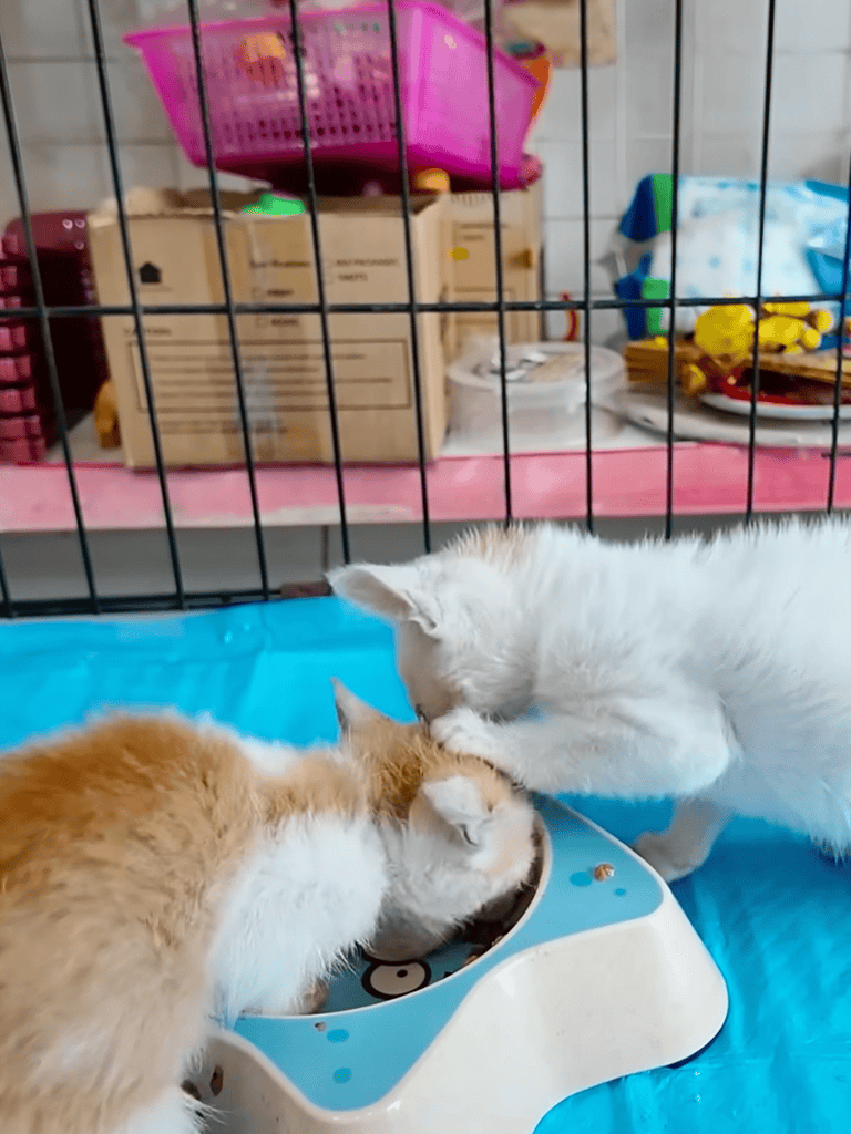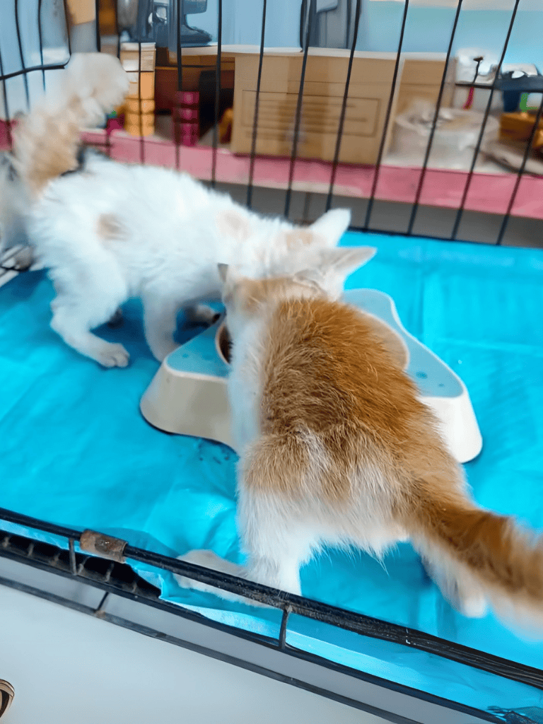 The once-injured kittens, now healed, brimmed with energy. Each meal became a playful battle of swipes and growls as they competed with one another.