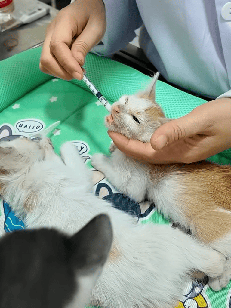 The frail kitten absorbed the medication, a hopeful victory in the tense rescue effort.