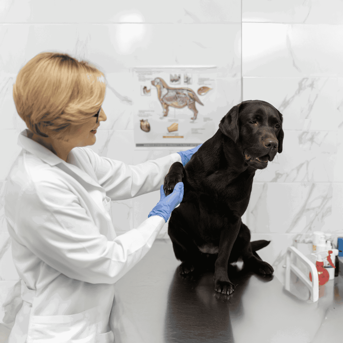 A leash or a harness can also help keep the dog steady. If you’re alone, try to place the dog in a corner; this limits its movement. Remember, never tie them up or hold them too firmly to avoid additional stress.