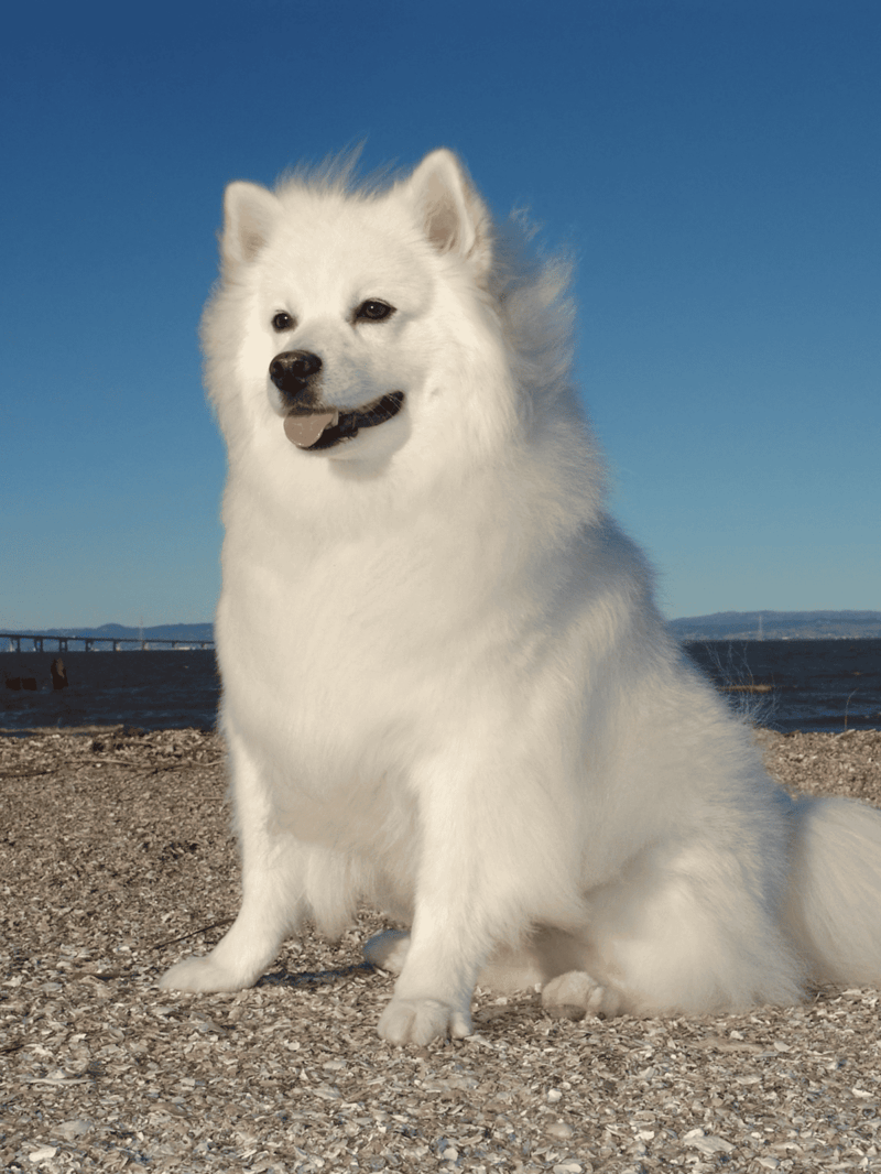 The Japanese Spitz is a lively and joyful breed, often moving energetically around those they love. With their long, pristine white fur, they are easily recognized. Their sharp, pointed snout and triangular ears give them a look that resembles a fox.