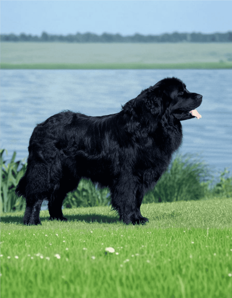 Newfoundlands are large, fluffy dogs known for their imposing size, often weighing up to 150 pounds. They require regular grooming due to their heavy shedding and drooling. Owners should be prepared with a strong vacuum to manage the extra fur. Their grooming needs are important for maintaining their coat.