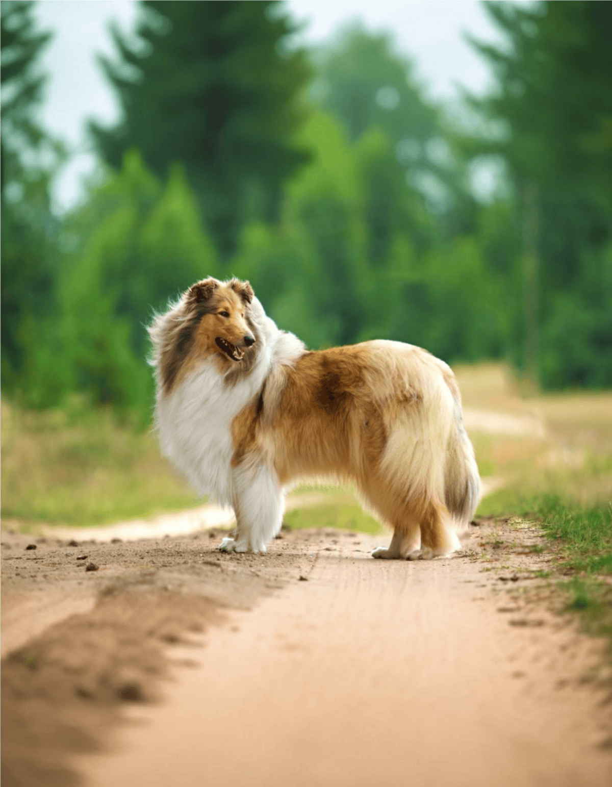 Collies have two different kinds of coats. Some Collies have long and thick fur, known as Rough Collies. Others have shorter fur and are called smooth Collies. Regardless of the coat type, Collies are active dogs. They need at least one hour of exercise every day.