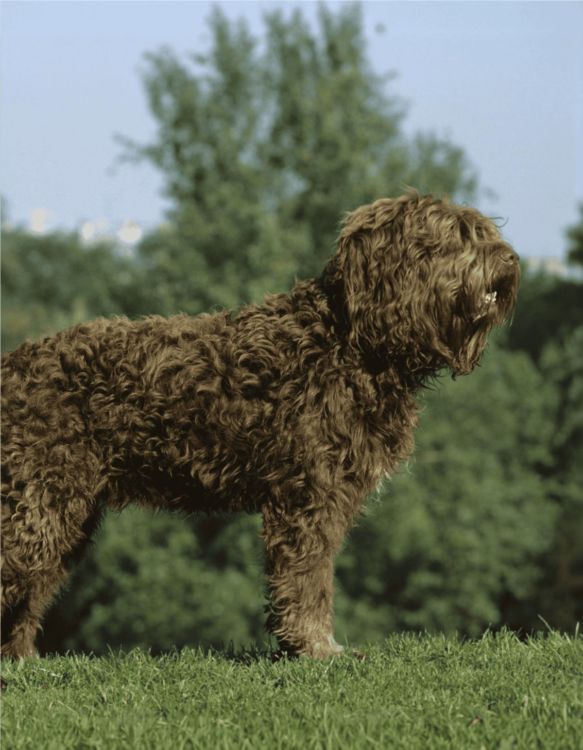 The Barbet is a loyal dog with a curly coat that gives it a unique look. This active breed enjoys spending time in water. It’s a good idea to let them swim or try out fun activities like dock diving. To keep their coat healthy and free from tangles, it’s important to brush their fur at least weekly. Dogs that swim often may need even more brushing to avoid mats.