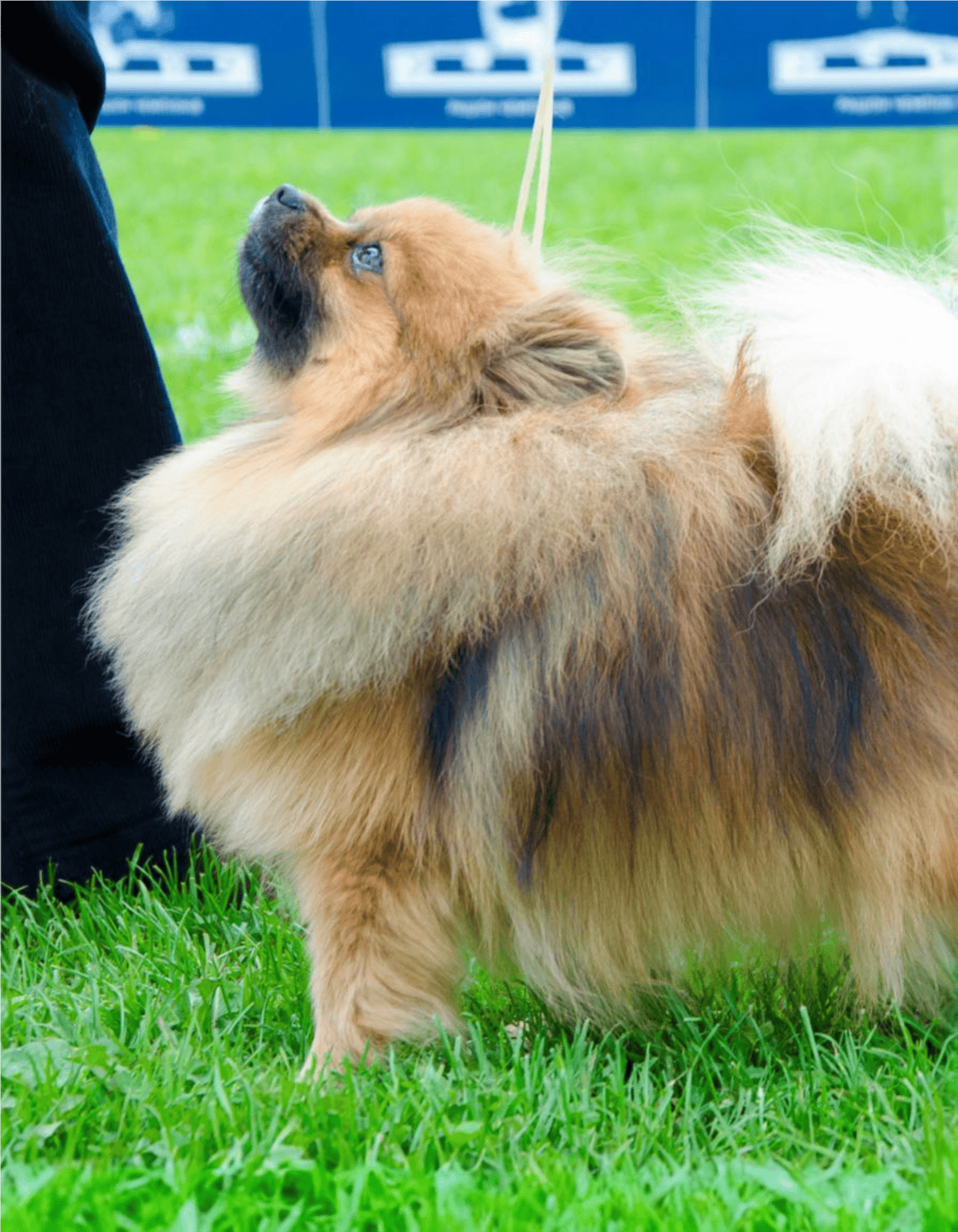 Pomeranians, characterised by their fluffy coats and lively nature, come in a variety of colours like black, white, brindle, chocolate, orange, or red. Their thick fur needs regular attention to avoid tangles. Brushing twice a week is essential to maintain their coat and keep them content.