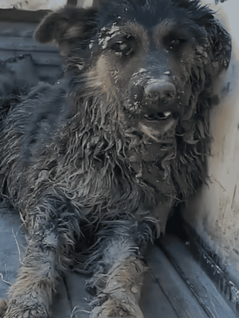 Beneath the dirt and dried mud, dark bruises covered his frail body. His wounds ran deep, not just on the surface, but in his weary eyes, pleading for help.