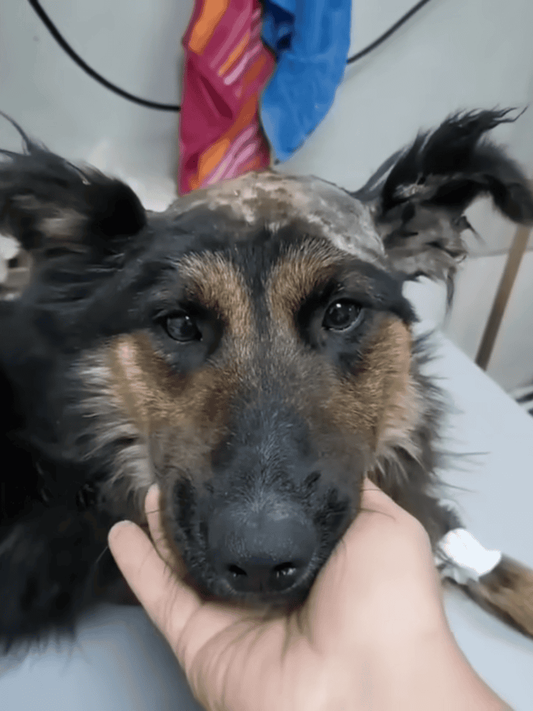 His head wounds were deep, raw, and festering, ridden with maggots. His body had fought for days, but without help, time was running out.
