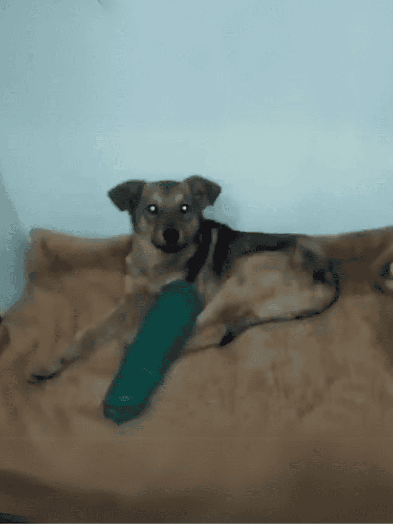 Tonight, he’s resting safely under the rescuer’s roof, no longer scared or in pain.