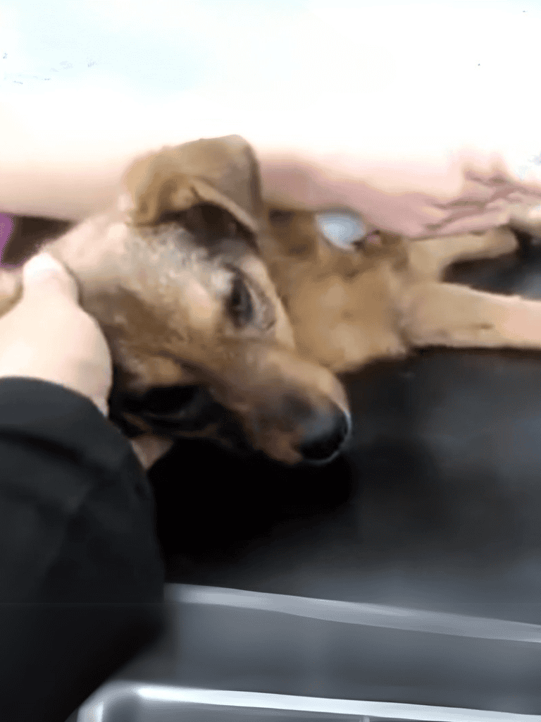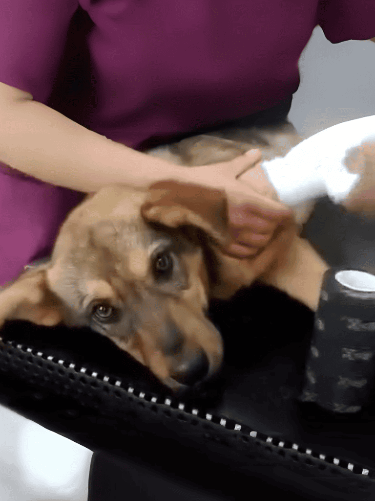 At the clinic, the little dog received needed care. Despite his pain, he stayed calm as the staff tended to his injuries, offering a glimmer of hope after his suffering.
