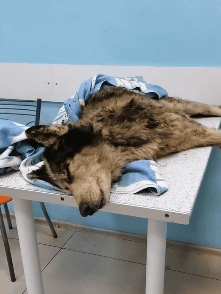 In the bustling city, an abandoned dog lay by the roadside, exhausted and despairing.His frail form suggested days of neglect, with bedbugs taking advantage.