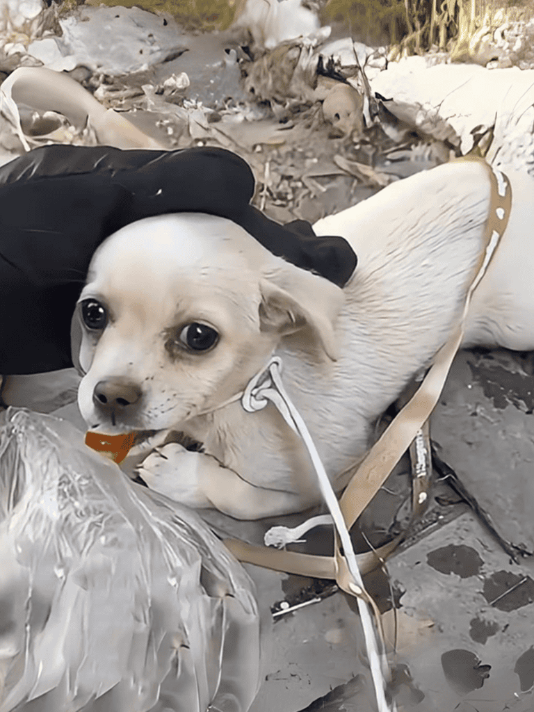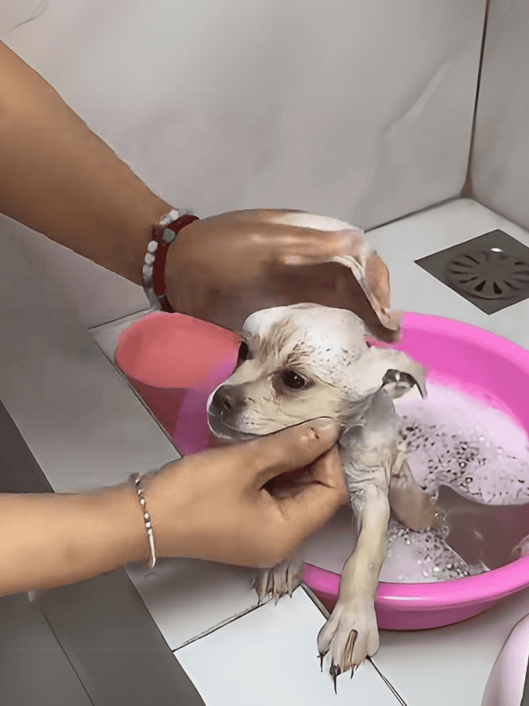 The puppy, limping against the wall, wore her journey like a badge. Shivering, she was covered in wounds that told of survival. They rushed her to the hospital for a bath and examination.