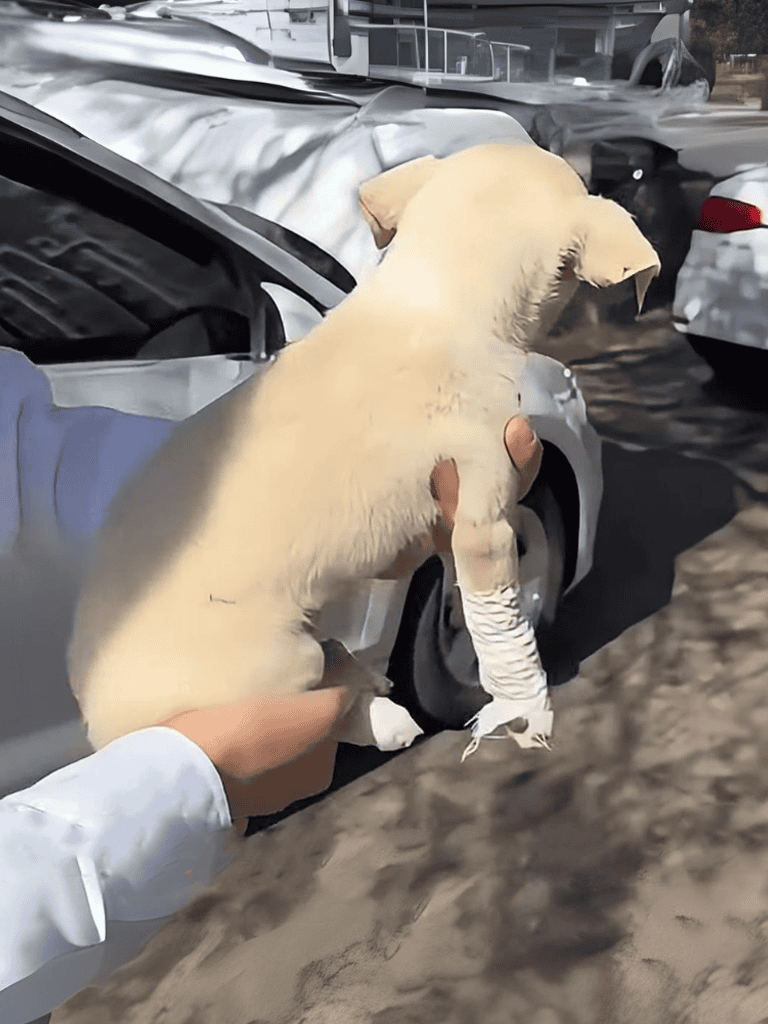 The veterinarian wrapped a cast around the puppy’s leg, explaining to the couple the importance of keeping their pet warm and nourished. The puppy wagged her tail, offering hope.