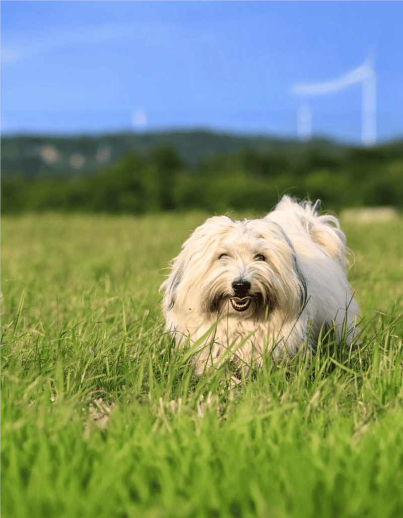 Bolognese dogs have a long, fluffy white coat and are known for their playful and easygoing nature. They fit well into any living situation and get along with children and other pets.