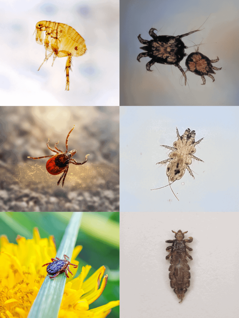Ticks can lead to serious health issues if not removed quickly. Mites, another type of parasite, cause conditions like mange, leading to hair loss and skin thickening.