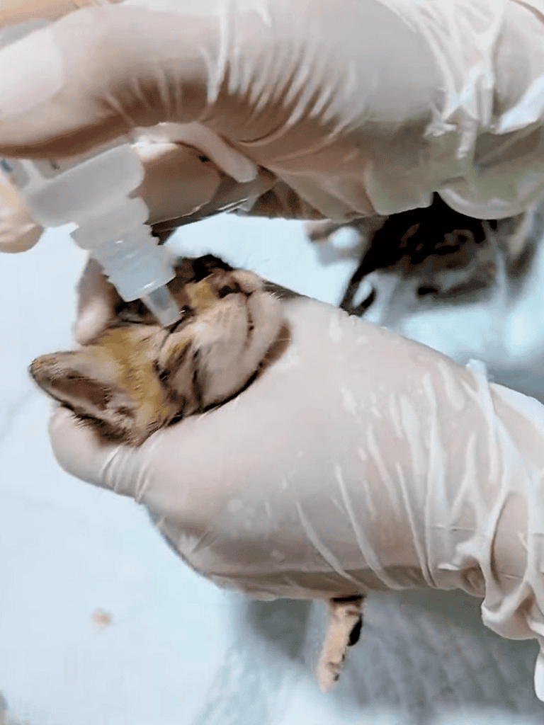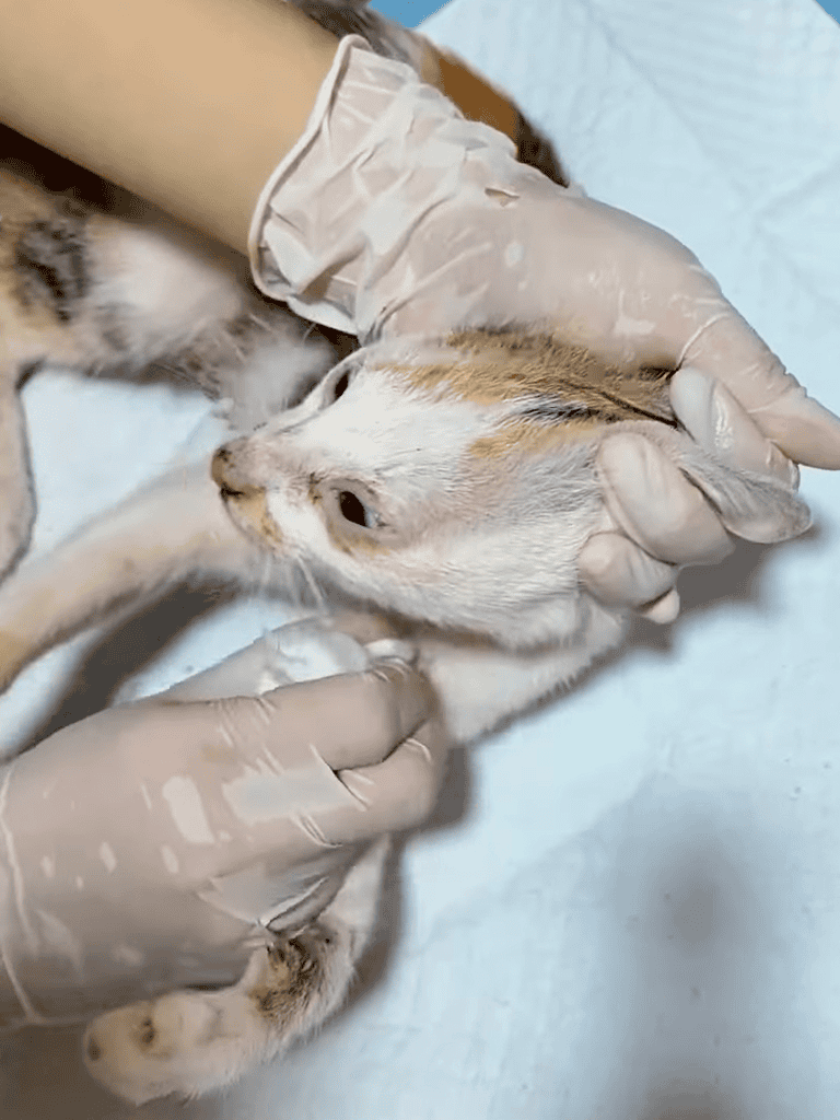 Each kitten was gently attended to. Their faces and eyes were cleaned. The doctor treated their mouths and checked their condition to ensure they were healthy.