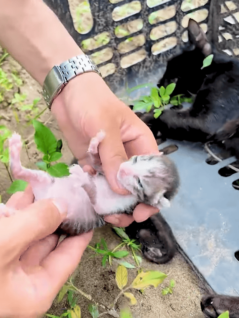 The doctor removed the baskets, revealing the kittens. Gently, he retrieved the first trembling kitten, examining its face, ears, and frame with precision. Barely days old, the kitten was placed into a cage. The rescue of its siblings and mother was just beginning.