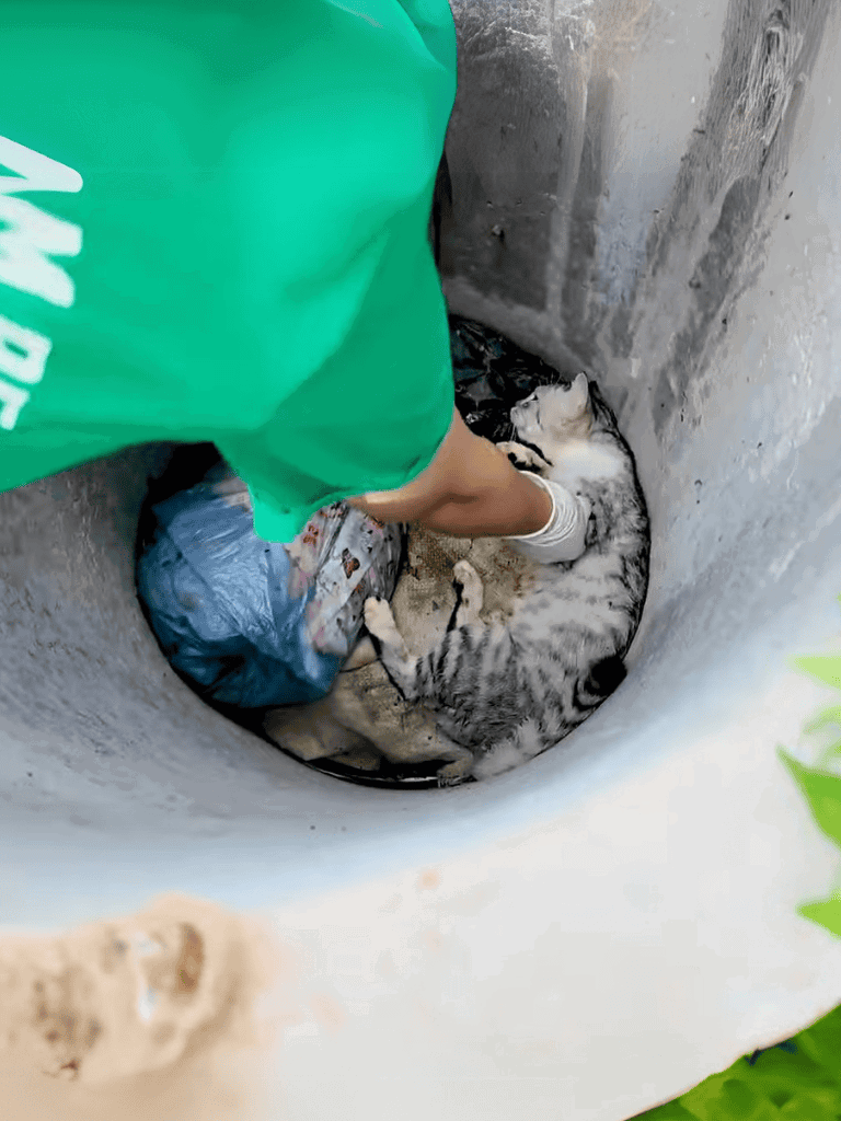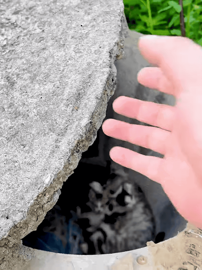 Beneath a deep hole, a mother cat and her kittens were trapped, waiting for rescue from a perilous predicament.
