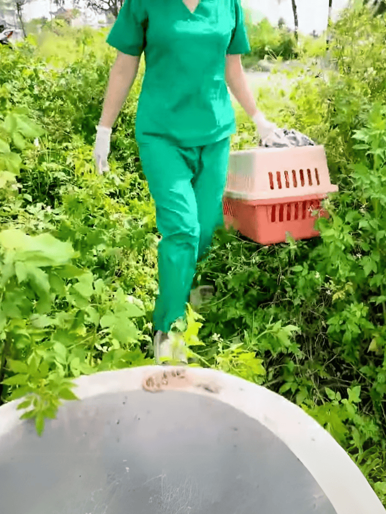 After completing the first mission, our team moved to a debris-strewn area where abandoned cats awaited rescue. Among trash and tires, kitten cries echoed. They needed help, and we were ready.